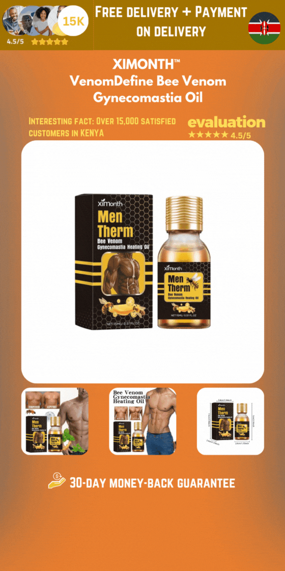 🔥 Warming bee venom chest oil that helps reduce the look of man boobs and firm the chest. Over 15,000 users in Kenya – FREE delivery & Cash on Delivery.